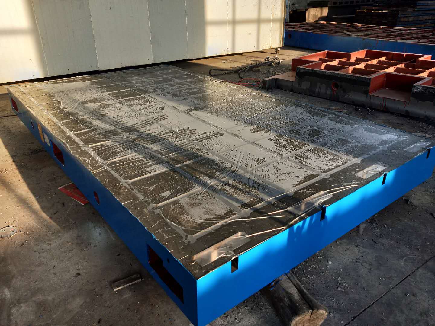 T型槽平台“槽”的制作工艺按照在铸铁平板的端面和上平面已经画好的加工线找正在装夹平板。用切用切槽刀刨出直角槽。如果T型槽较小(槽宽小于100mm),顶部直角槽精度要求不高,可在一次走刀中切出,使其宽度等于T形槽槽口的宽度。如果T形槽较小和槽口精度要求较高或T形槽较大时,粗刨和精刨两次刨出直角槽。T型槽平台的“槽”主要用来固定工件的,T型槽平台的槽常用的开口为28,22的开口。