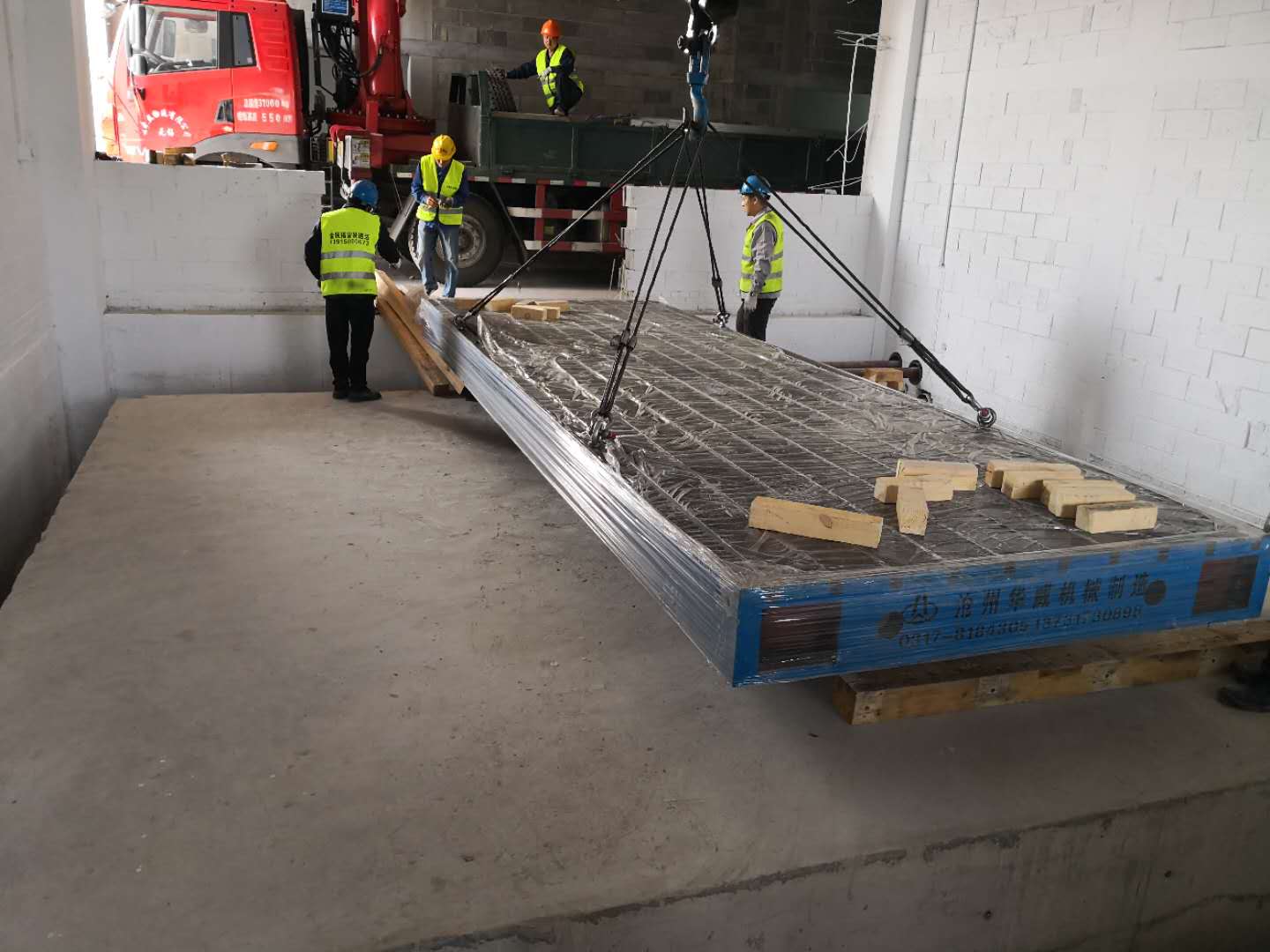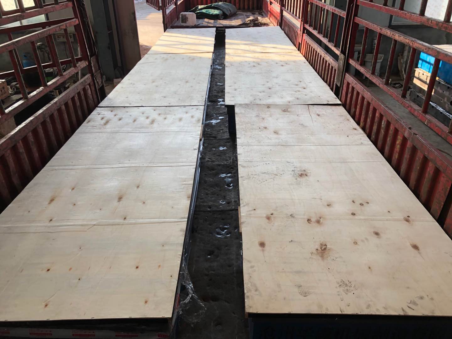 c、为了防止地平铁发生的变形,在吊装地轨时,要用四根同样长度的钢丝绳同时挂住地轨上得四个起重孔,将地轨平稳吊装在运输工